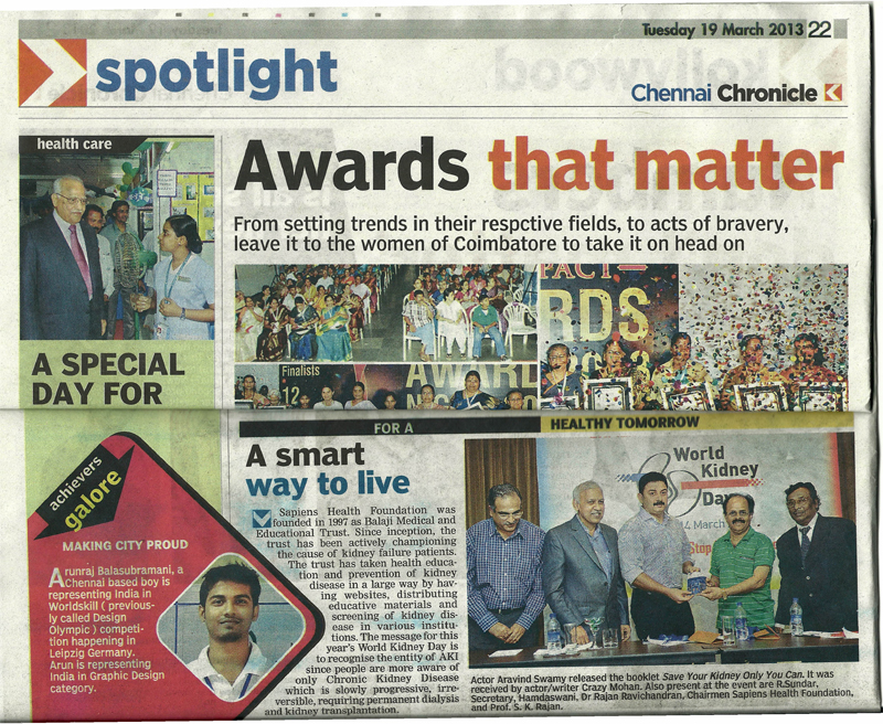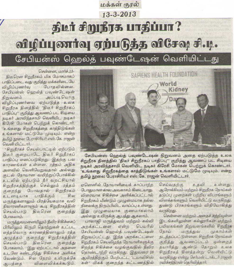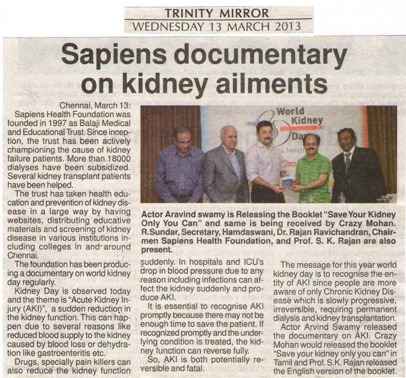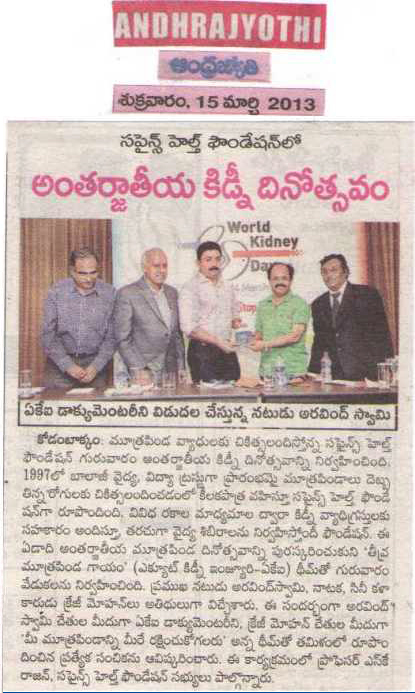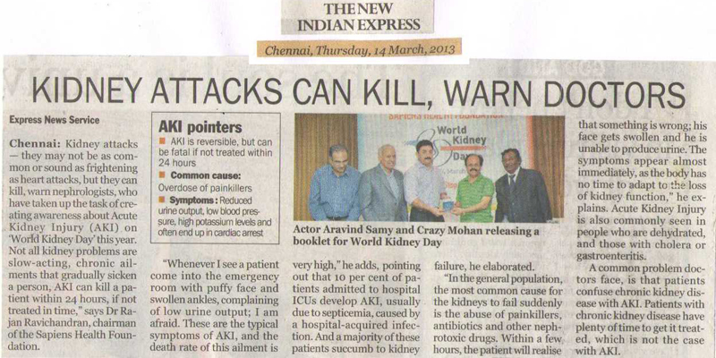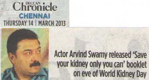 Launch of video on Acute Kidney Injury (AKI) on World Kidney Day 2013 by Actor. Arvind Swamy