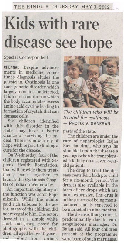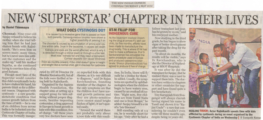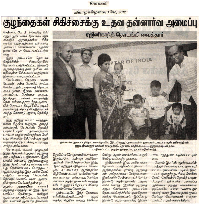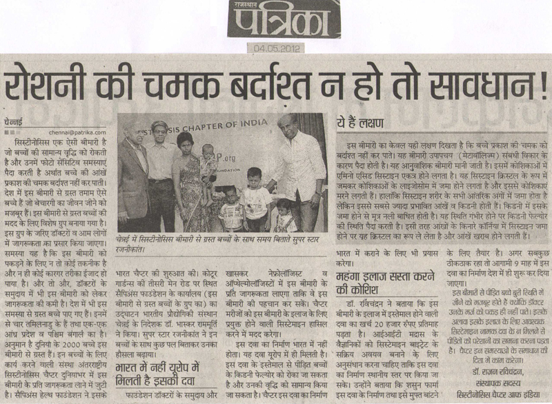 Launch of Cystinosis Foundation, India - 2nd May 2012 in presence of superstar Rajinikanth